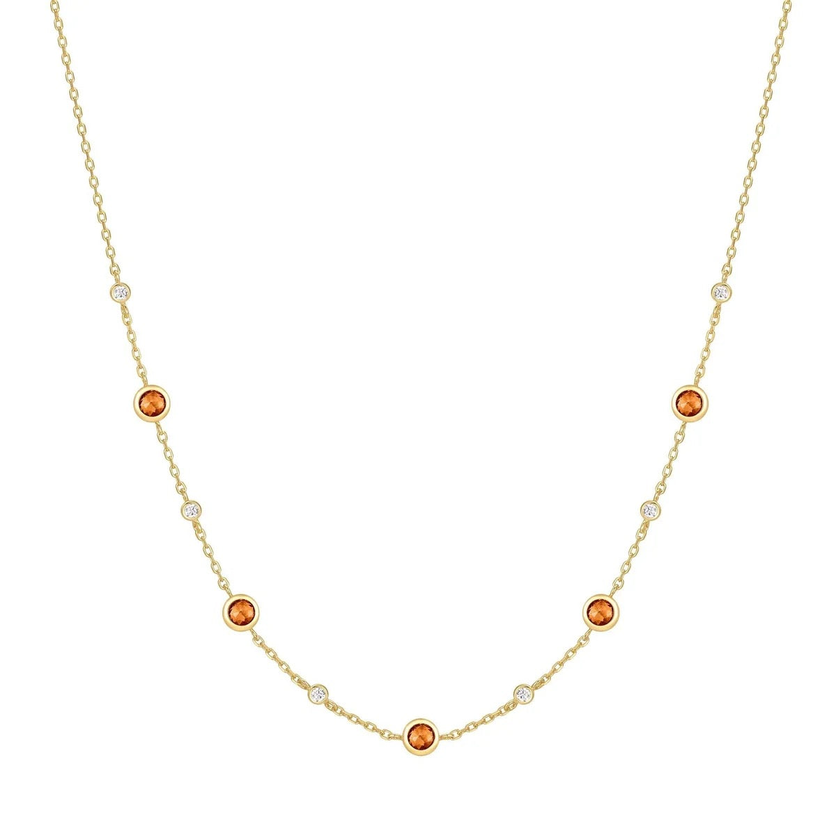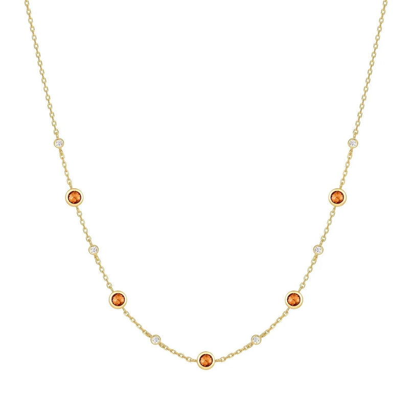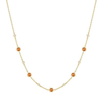 Hook Em' with the Burnt Orange Bezel Set Necklace, featuring radiant solar orange nanogems that capture warmth and elegance. Crafted with 14K gold plating, this 16-inch necklace with a 2-inch extension offers a fluid, graceful design that moves effortlessly with you. Adorned with 1.8mm and 3.5mm cubic zirconia nano gems, it’s a sophisticated accessory that shows your support of Texas while adding a vibrant, contemporary touch to any ensemble.