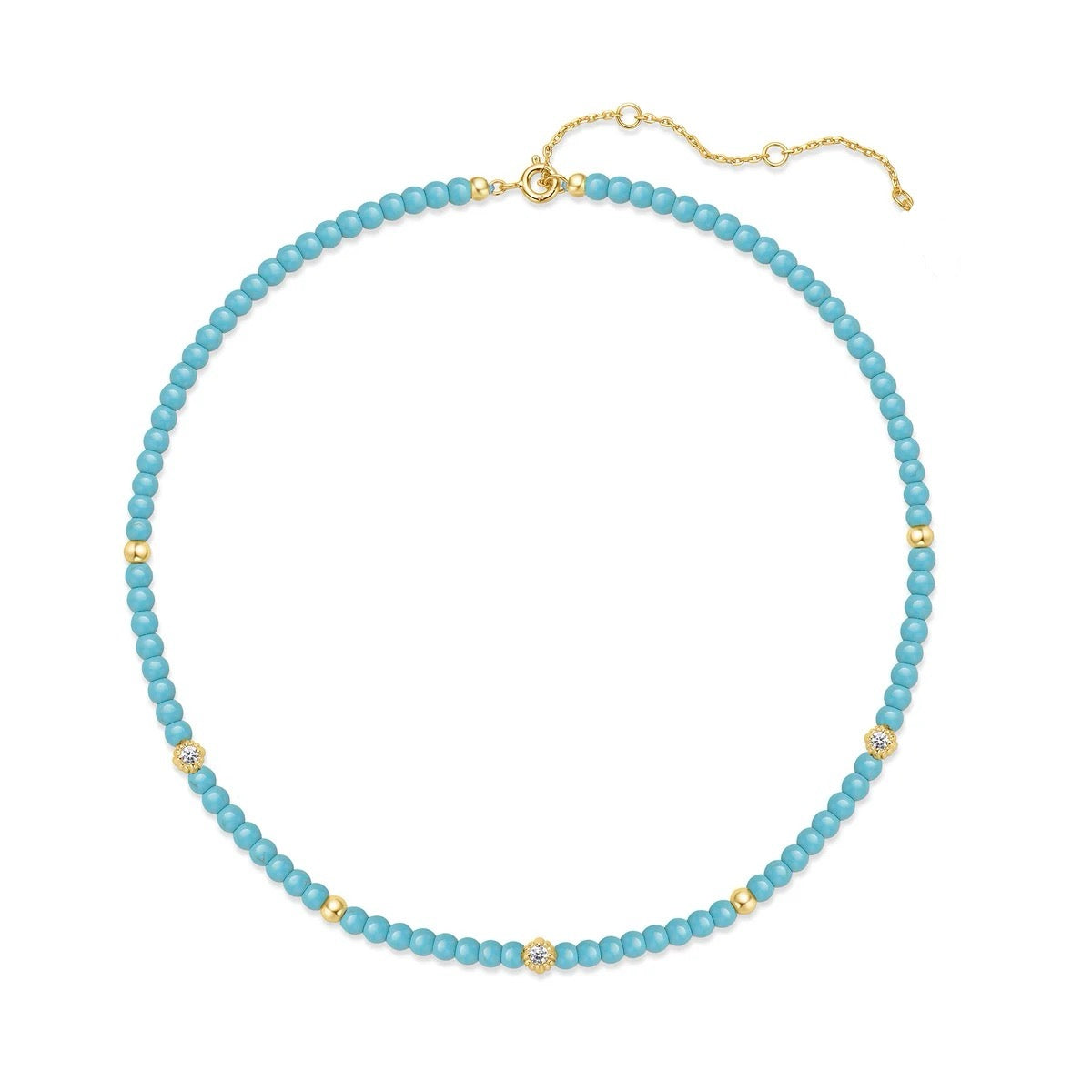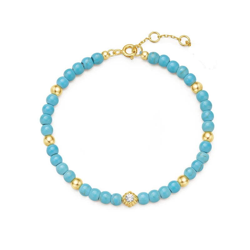 Inspired by nature’s wild beauty, the first turquoise Cravings by The Karat Concierge piece, this lab-created turquoise necklace or bracelet embodie effortless elegance and a spirit of adventure. Crafted from 925 sterling silver with 14kt gold plating, it features a calming turquoise stone paired with sparkling cubic zirconia accents. The necklace offers versatile layering options for a refined yet relaxed look, and the bracelet can be stacked with any other bracelet or bangle- perfect for enhancing your everyday style with sustainable sophistication.