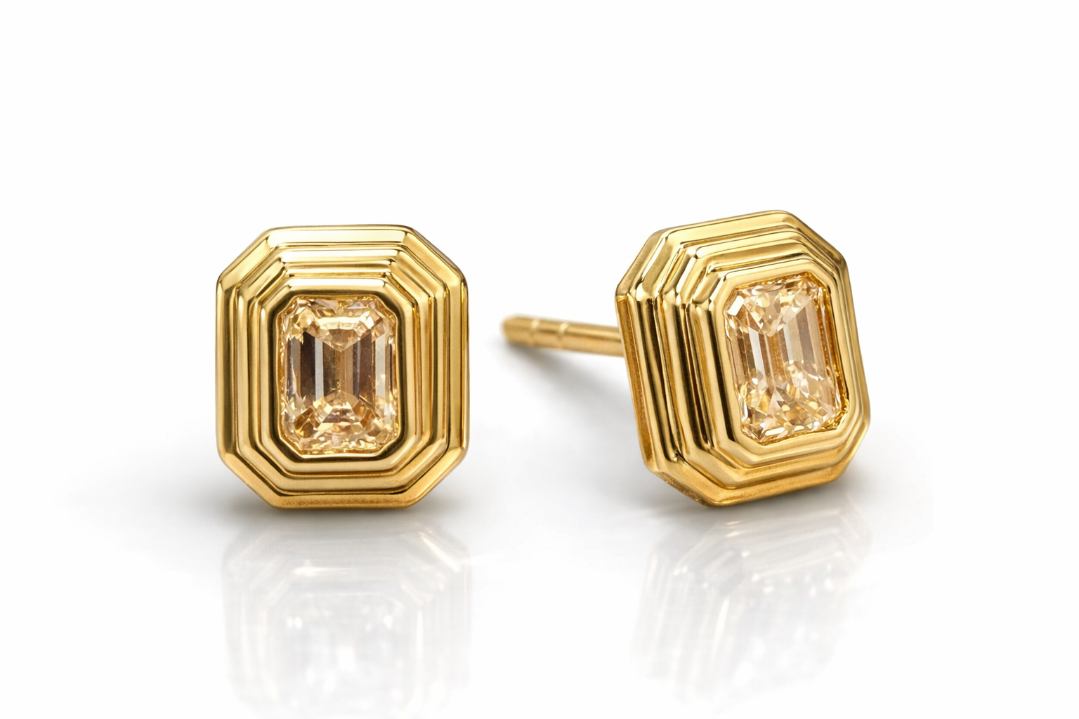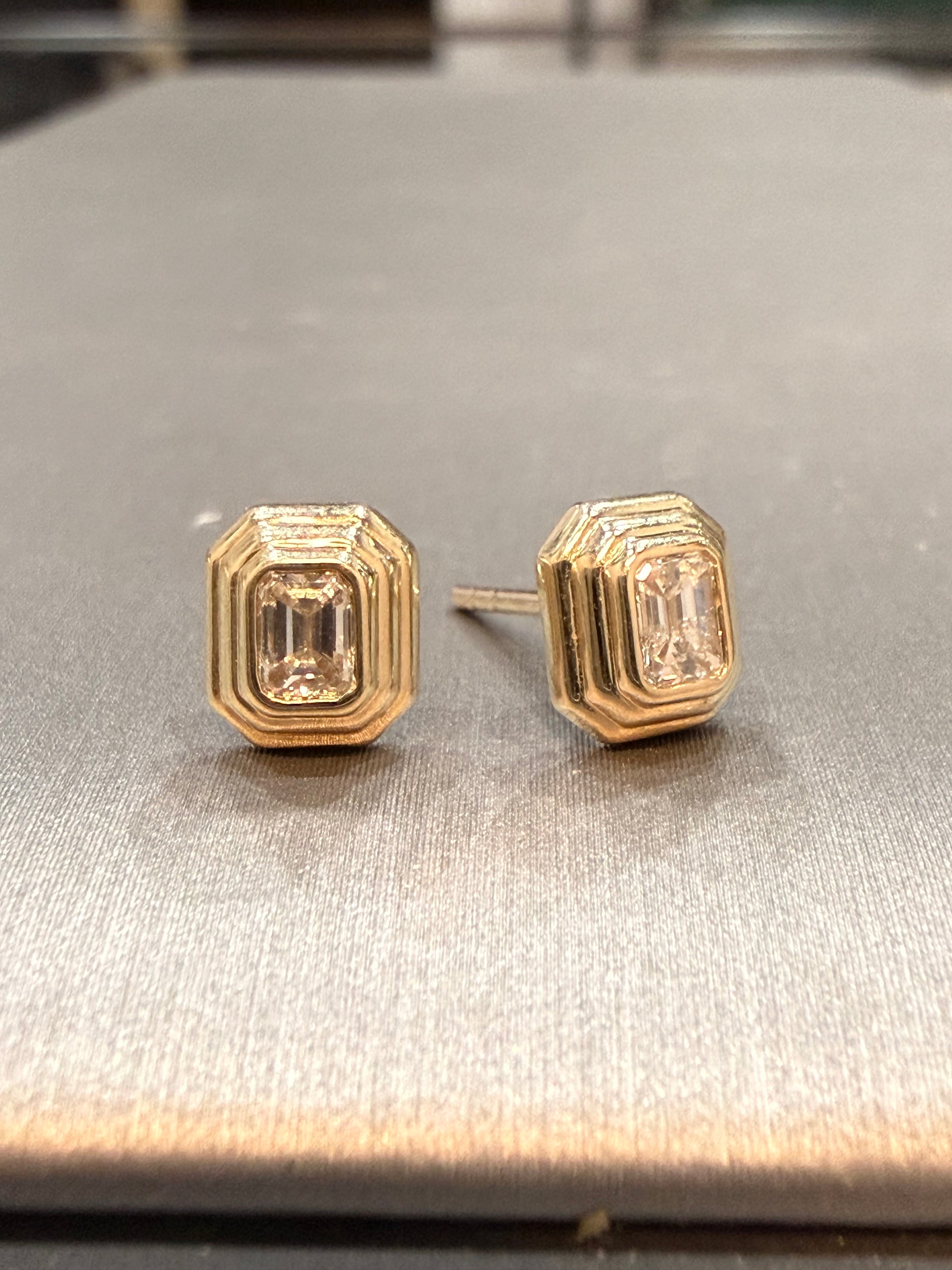 Elevate your everyday elegance with The Gatsby Stud, a timeless pair of emerald diamond earrings set in lustrous 14K yellow gold. Each stone is cradled in a faceted bezel that catches light beautifully, creating subtle sparkle with refined sophistication. At .32 CTW, these studs offer the perfect balance of presence and understated luxury. An investment piece that transitions seamlessly from boardroom to evening, these earrings embody classic style with enduring appeal.